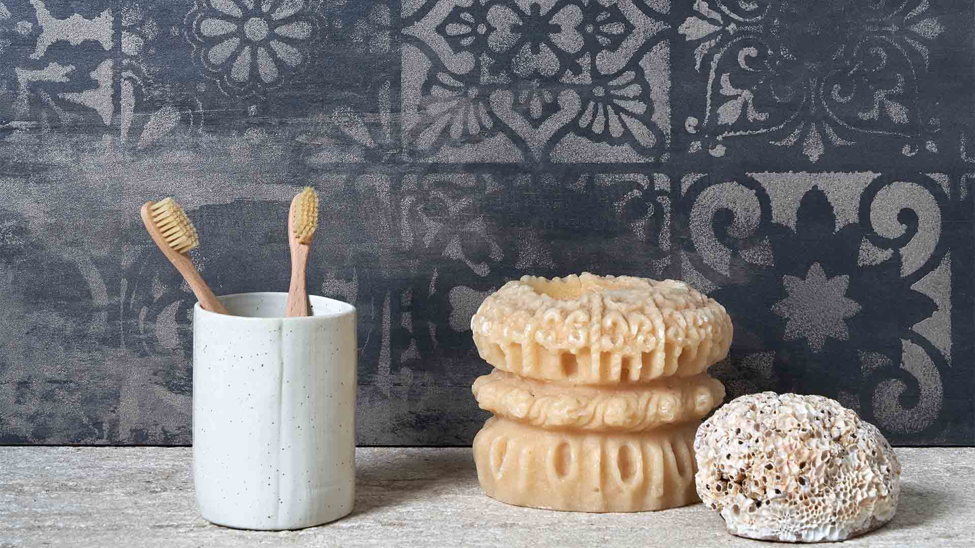 Rivestimento decorativo per interni ad effetto “dilavato”, tenuemente metallizzato