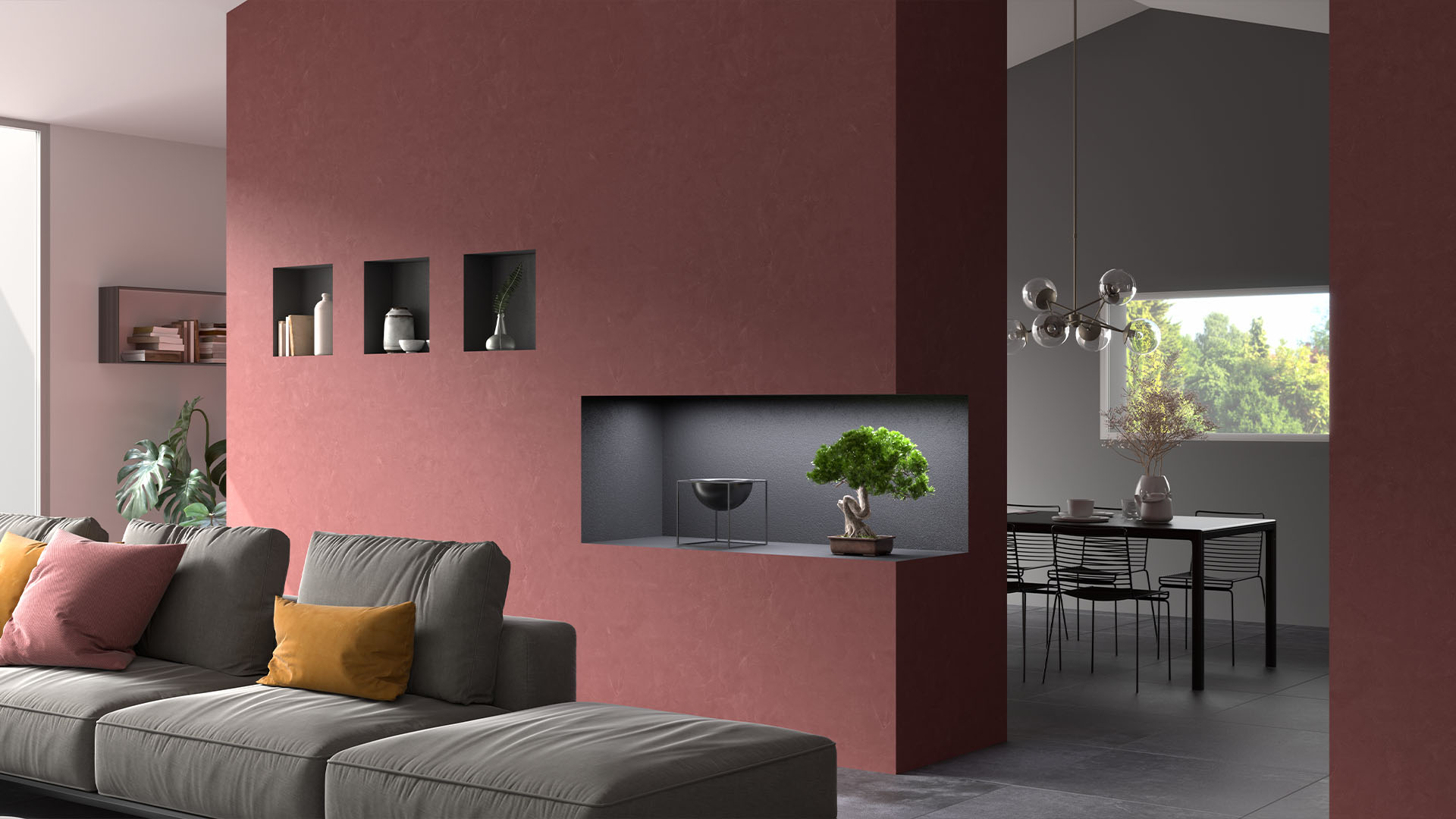 Finitura decorativa per interni, ad effetto sabbiato